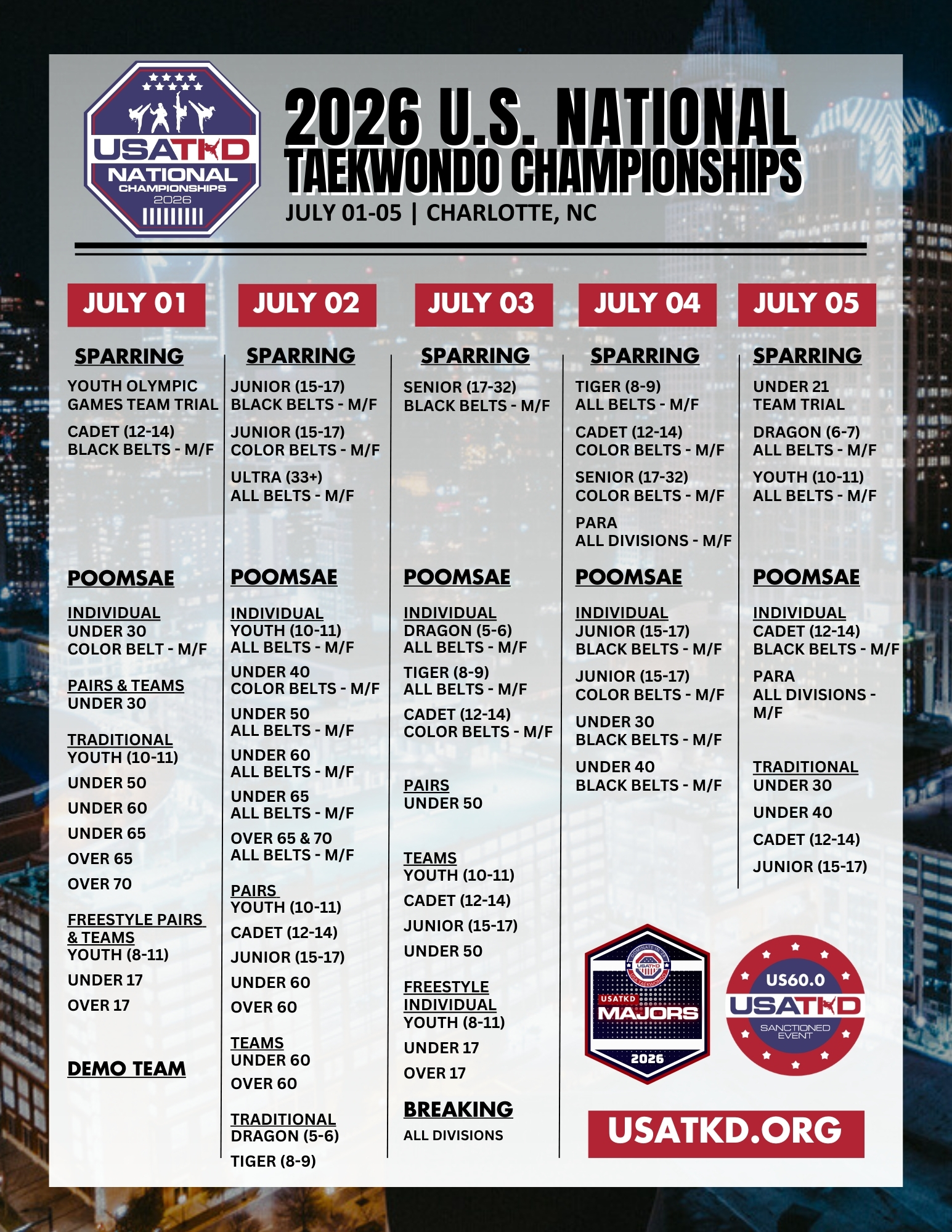 Jun 30, 2026 - Jul 4, 2026 | USATKD Major Event | Charlotte, NC, United States