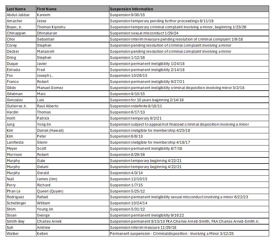View, opens in a new tabSAFESPORT SANCTION LIST